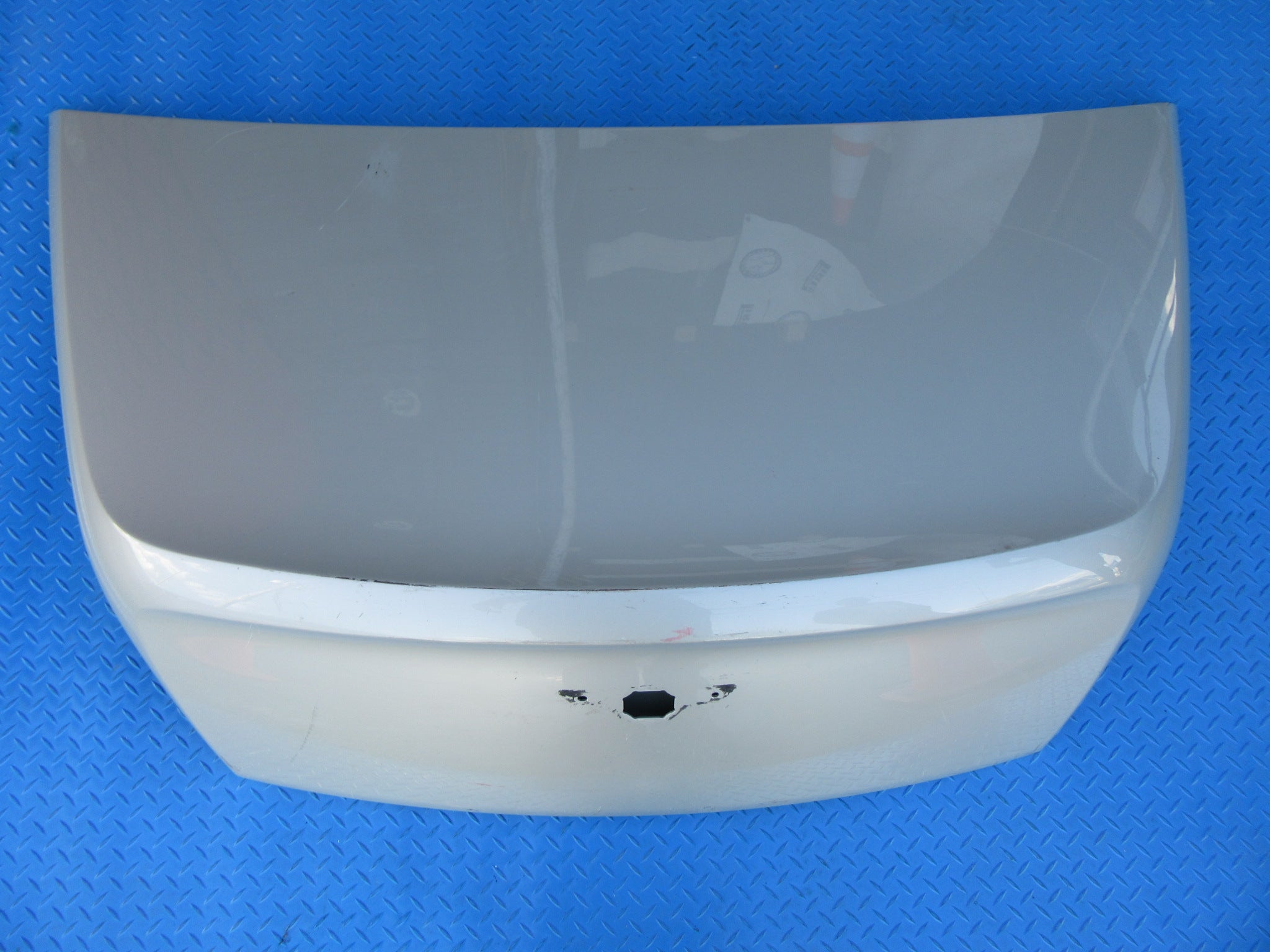 Used trunk lid has a damaged corner and scratches, see pictures.