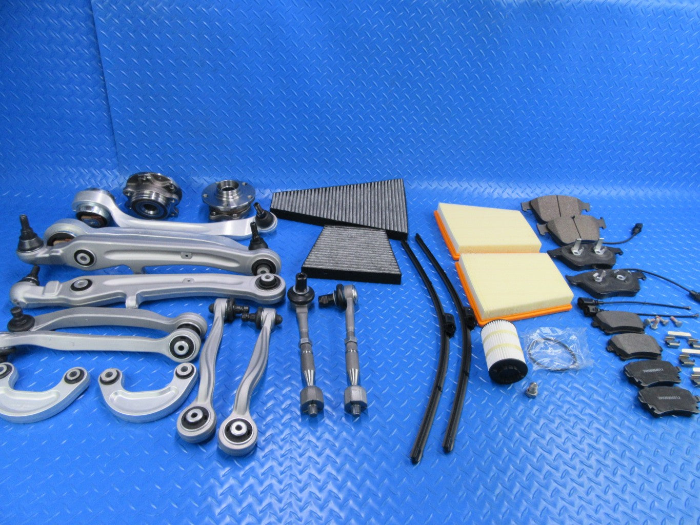 2 sway bar links , 2 inner and outer tie rod ends, 5 filters, 2 wiper blades and 2 hub bearings