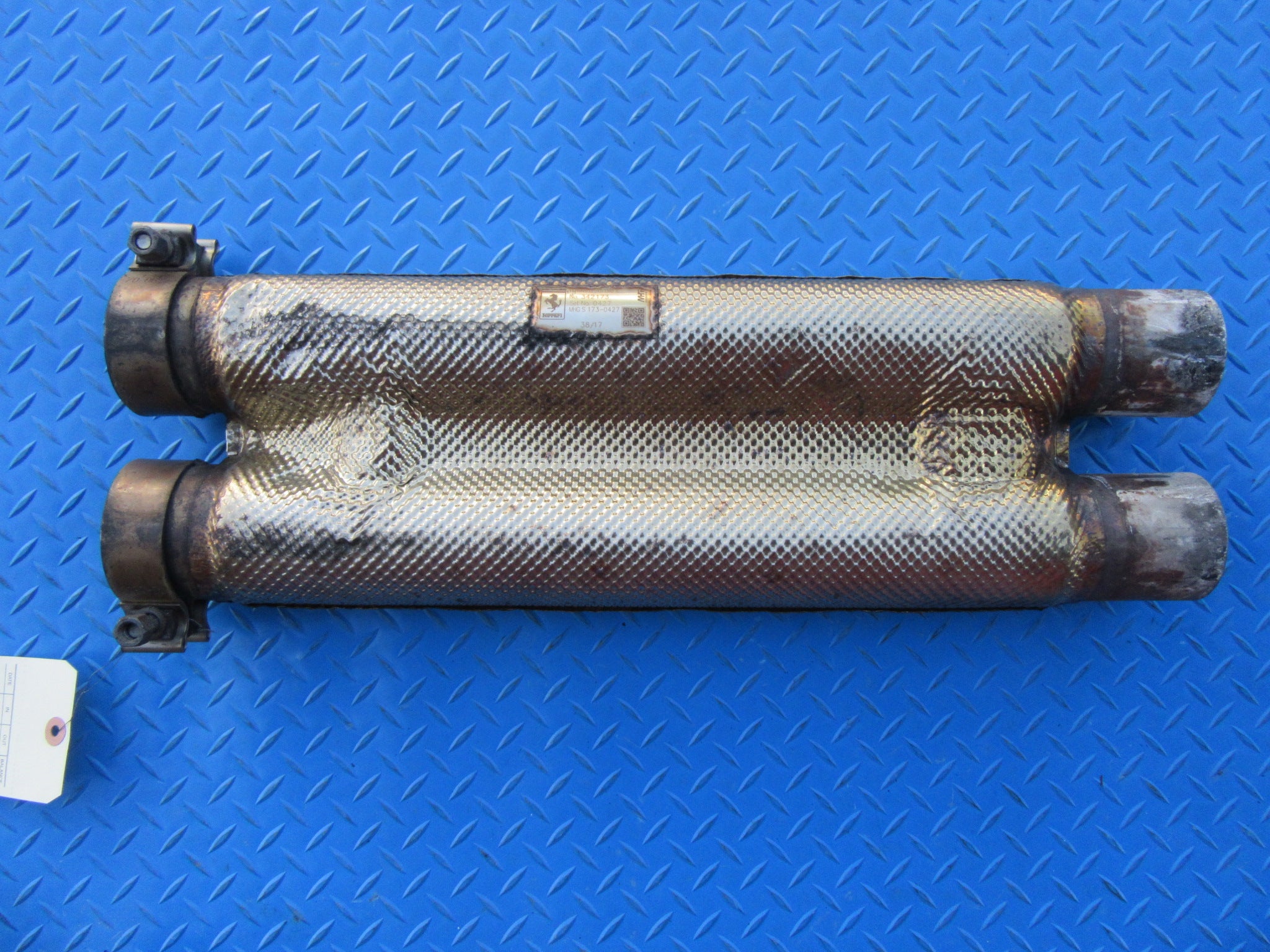 Used exhaust mid pipe has some dents in the heat shield, see pictures.