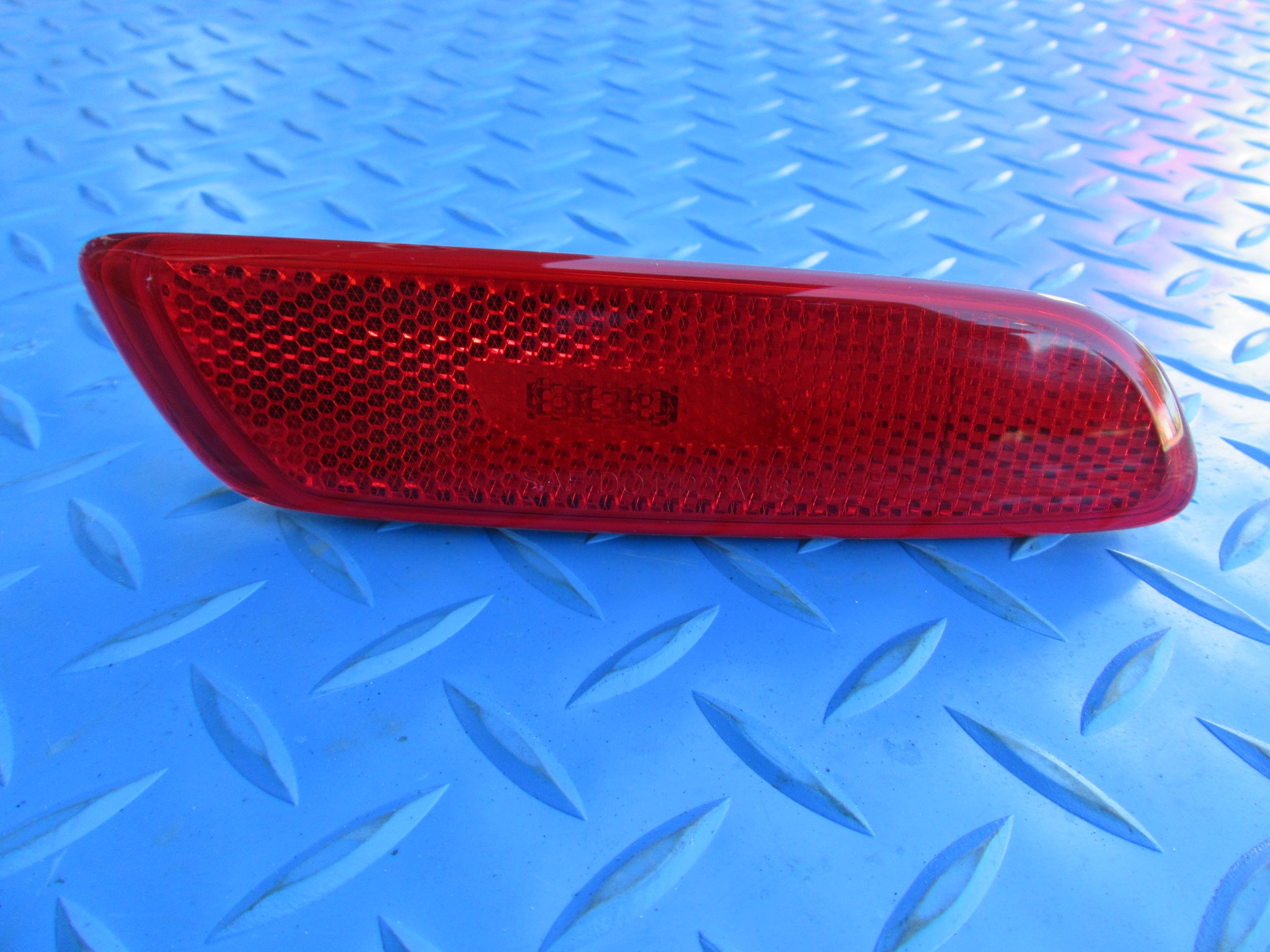 Used left rear side marker has a crack and some scratches, see pictures.